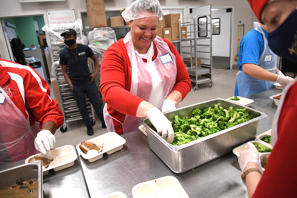 Cassie Jones, CVP, Senior Event Manager at the New Orleans Ernest N. Morial Convention Center, Packages Broccoli at the Second Harvest Food Bank Volunteer Event on July 15, 2021